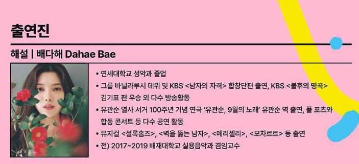 해설: 배다해 (성악 전공 가수 겸 배우)